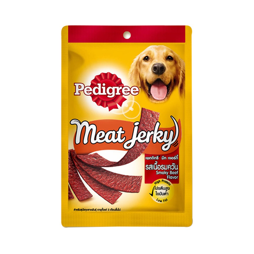 Thịt Meat Jerky hương vị bò xông khói là một món ăn ngon hảo hạng mà con chó của bạn sẽ thích có bất kỳ thời gian nào trong ngày. Các lát thịt mỏng được cắt thẳng rất tốt cho sức khỏe của cún nhà bạn. Sản phẩm cung cấp protein, chất béo, carbohydrate, chất xơ, vitamin và khoáng chất, cung cấp đầy đủ chất dinh dưỡng cho chó. Thịt Jerky phù hợp tất cả các giống chó trên 3 tháng tuổi.